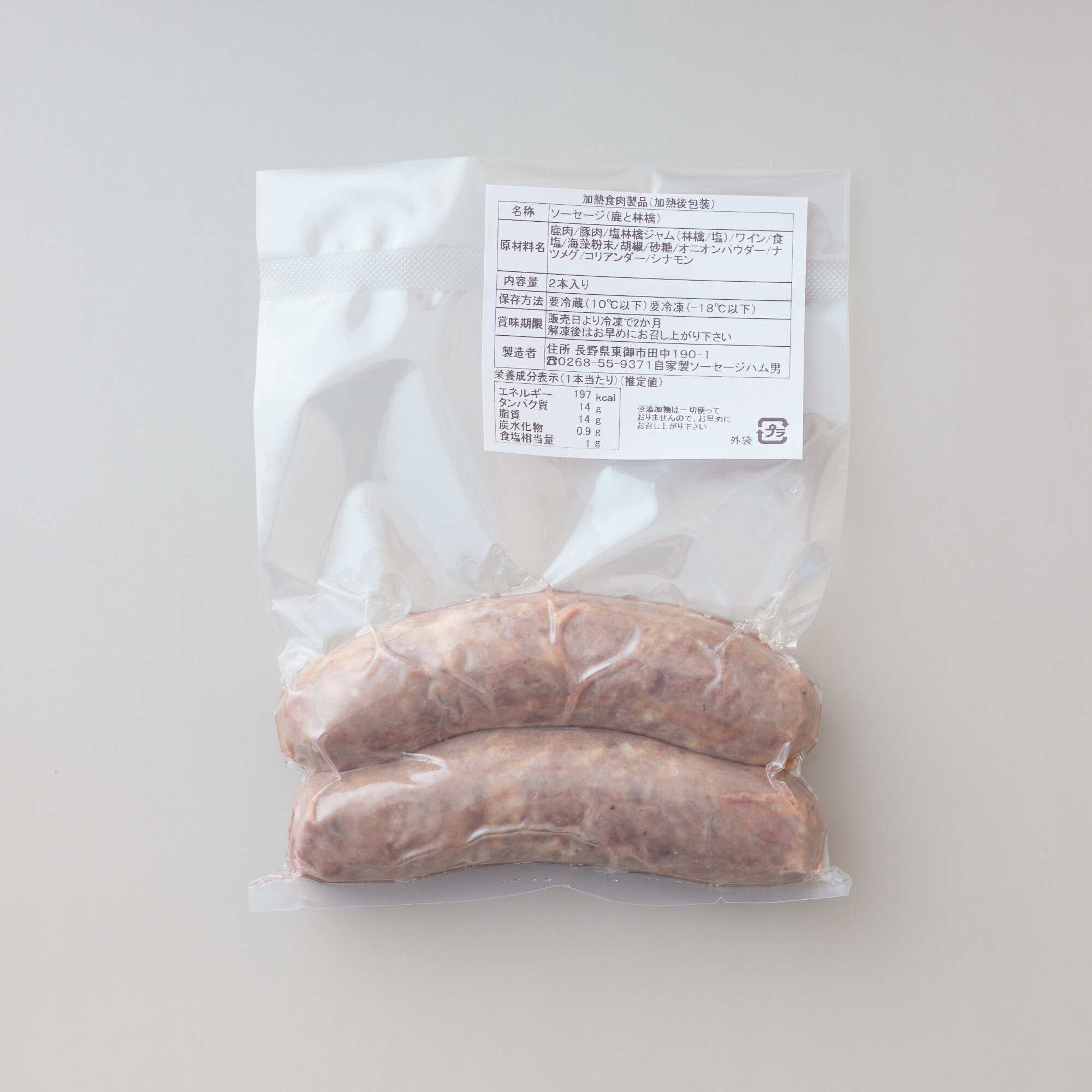 鹿肉・豚肉・塩林檎ジャム(林檎・塩)・ワイン・食塩・海藻粉末・胡椒・砂糖・オニオンパウダー・ナツメグ・コリアンダー・シナモン