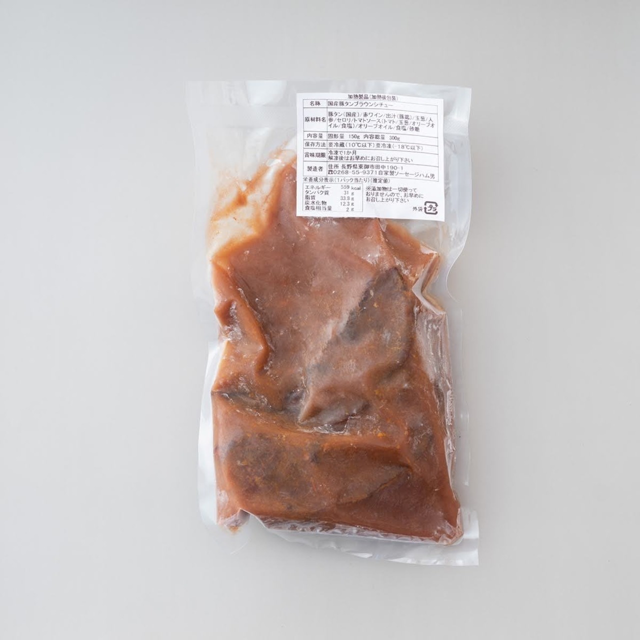 豚タン(国産)・赤ワイン・出汁・玉葱・人参・セロリ・トマトソース(トマト・玉葱・オリーブオイル・食塩)・オリーブオイル・食塩・砂糖